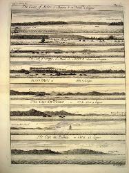 A copperplate engraving divided into 8 strips horizontally, showing the coastline as seen