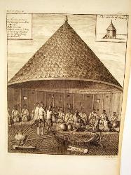 modern day Liberia). An exchange of gifts is taking place inside a traditional raised ‘lodge’.