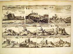 An eleven panel copperplate engraving of views of all the principal fortifications along the