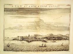 A copperplate engraving showing the English castle at Cabo Corso (Cape Coast) in Ghana.